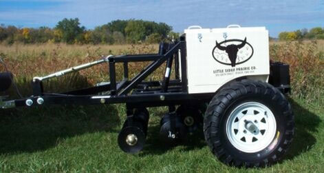 Little Sioux Prairie Co. manufacters the Dew Drop Drill, an ATV pulled Native Grass Drill/Seeder.