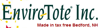Enviro-Tote™, Inc. has been creating environmentally friendly promotional tote bags since 1990. Our bags are made from unbleached and colored cotton, certified organic cotton, and The Bottle Bag™, a material made from 100% recycled soda bottles. All our products are made in the U.S.A. We fill orders starting at only 50 bags! And our customers have used Enviro-Tote™ bags for company promotions and special events throughout the U.S. and around the world.Each of our bags is individually cut, hand-stitched and screen-printed at our plant in tax-free Bedford, New Hampshire. Enviro-Tote™, Inc. is a family-owned, woman-owned and operated company.Because we cut fabric only after an order arrives, we can provide custom sizes and styles as easily as our standard sizes and styles. We offer a wide selection of unbleached and colored materials for both bags and handles. After carefully cutting and hand-stitching each bag, we customize your bags with your company logo or promotional message. From start to finish, we take great care in producing each bag we make.The environment is important to us, so we believe in generating as little waste as possible in all that we do. Our efficient cutting and stitching methods, along with precise printing, eliminate fabric waste. All of our standard sizes are designed to have no fabric waste. We recycle all our office paper and cardboard, cans and bottles, and re-use one-sided office paper, which is bound into note pads. And, of course, we re-use our Enviro-Tote bags when we shop!Enviro-Tote began operations in Manchester's historic Millyard and purchased stitching equipment from garment giant Pandora, which was going out of business after providing decades of work to local stitchers. In addition to recycling Pandora's stitching machines, we also hired Pandora stitchers, most are still with our company today.We value our employees and their work, as evidenced by our affiliation with the Fair Labor Association as a Category C licensee. Since 1990, we have grown from 12 to 40 employees, many who have been with us since the beginning. As a family-owned business, we understand the importance of working well together. This harmony and attention to detail is seen in every bag we make. |