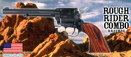 Born of the traditions of the Old West the Rough Rider maintains much of the look and feel of the legendary Single Action Army revolver, only in a scaled down version. Chambered for the .22 LR and .22 Magnum cartridges the Rough Rider is manufactured using state-of-the-art precision machinery that assures its accuracy and reliability. The cylinder lock-up is tight and the perfect timing of the action makes for a handgun that will put its shots where you want'em. The machined barrel is micro-threaded and inserted into the frame for the optimal barrel/cylinder gap to give you maximum ammunition performance. A hammer block mounted in the recoil shield provides extra protection and has a red dot indicator that lets you know when the gun is ready for action. Exotic hardwood cocobolo grips give it a handsome look. There are also other grip materials available, plus finish options that include the attractive and durable Smooth Silver and Black Satin. When it comes to the Rough Rider there are no shortcuts taken! Ideal for hunting, plinking or western action shooting let the Rough Rider be your choice in a new rimfire revolver. Proudly made 100% in the USA, all .22 and .32 Heritage revolvers combine quality with affordability… an American tradition. |