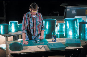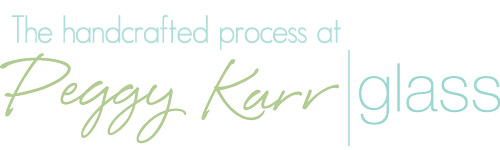 Uniqueness at Peggy Karr Glass extends into the industrial side of our business. Peggy designed our kilns in the early 1990's specifically for our product. When the glass and color are heated to 1600° F they fuse together and form one piece of glass, sealing and protecting the design forever. Each piece of Peggy Karr Glass undergoes a thorough cleaning and inspection before it can bear our distinctive inscription; 'PKG' for Peggy Karr Glass, followed by the year. This ensures your piece of functional art is of the highest quality and will be treasured and enjoyed for years to come. |